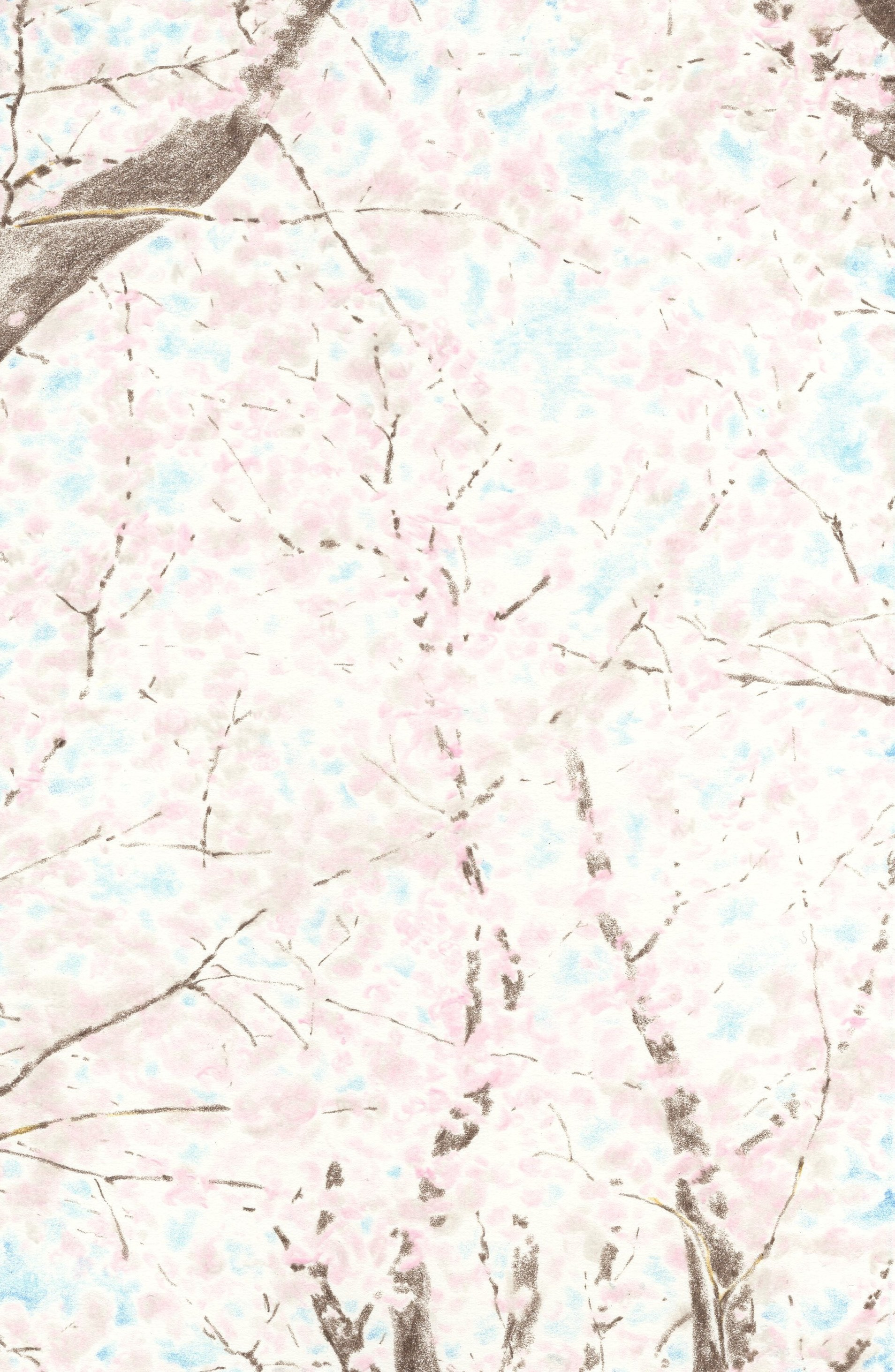 花の淡いピンクと空の水色が溶け合うように揺れている様を