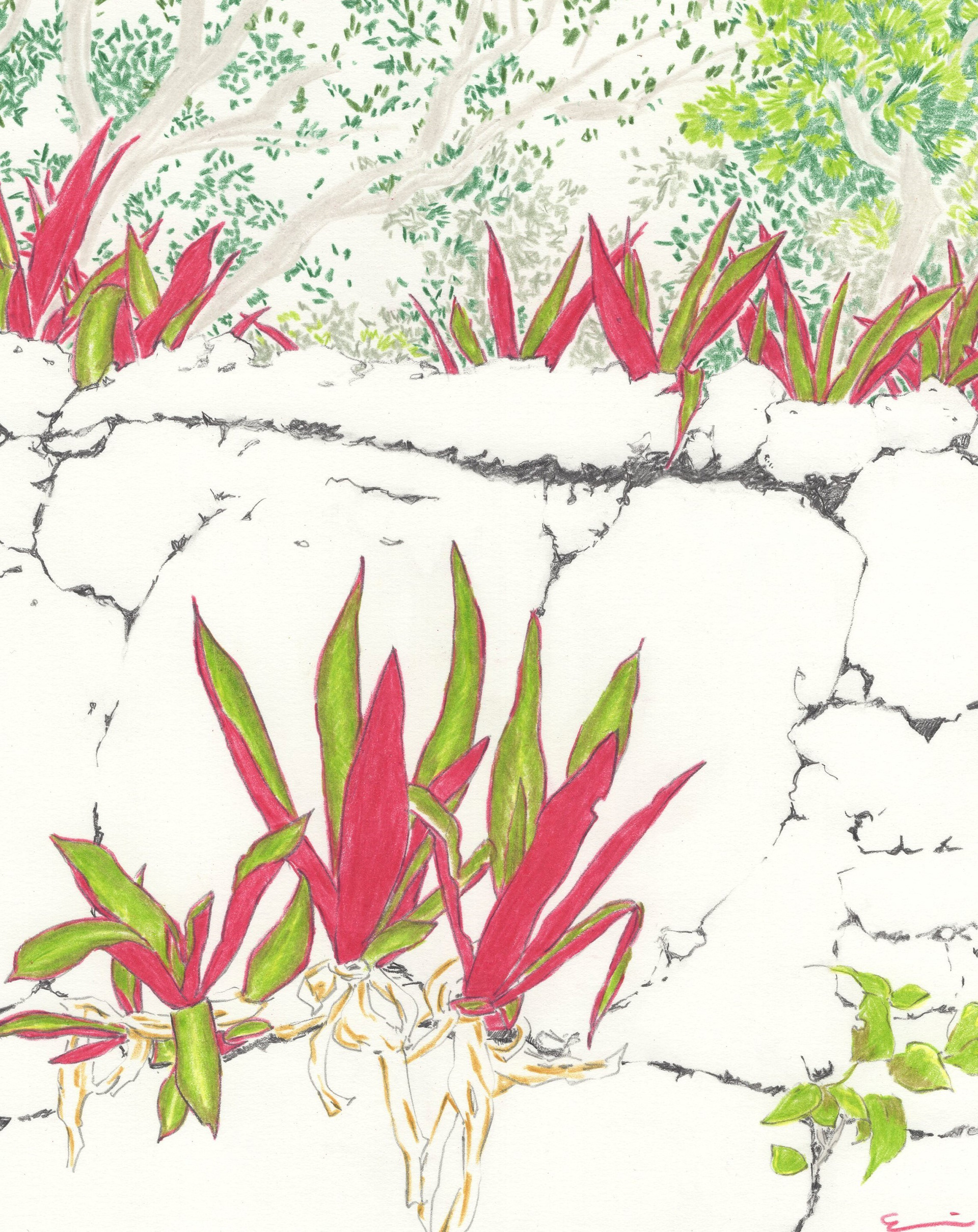 植物が映えるように石垣はシンプルに描きました。